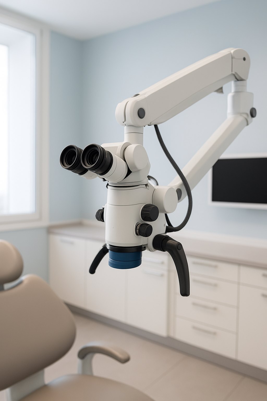 Ce type de soin nécessite un matériel particulier : le cabinet est notamment équipé d'un microscope opératoire, qui permet au docteur Dancourt de traiter les cas complexes.
